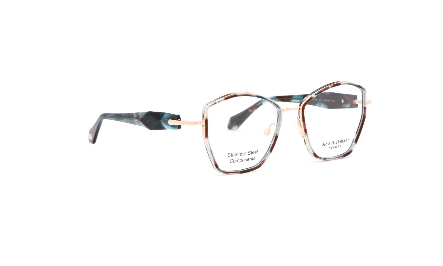 Ekskluzywne oprawki ANA HICKMANN 1537 c.G21 reprezentują wzornictwo w stylu nowoczesnego glamour. Nietuzinkowa forma okularów zachwyca bogactwem szczegółów i wysokiej klasy wykonaniem. Kształt soczewki nawiązuje do kocich oczu, a złote detale dodają oprawce blasku i podkreślają jej luksusowy charakter. Wybierz ten model okularów, by zaakcentować swoją oryginalność i zamiłowanie do mody.