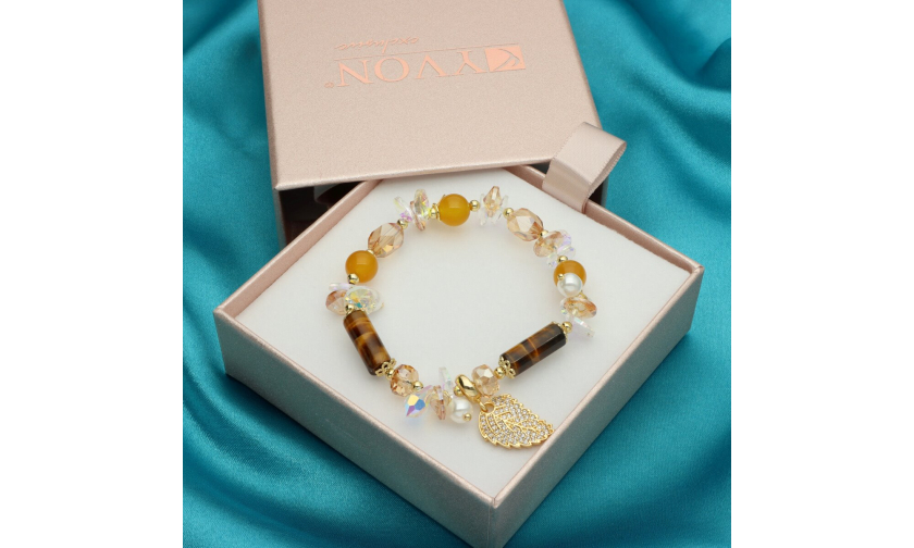 Wyjątkowa pozłacana bransoletka B96964 z kolekcji LOVELY STONES to połączenie elegancji, naturalnego piękna i duchowej symboliki. Wykonana z najwyższej jakości antyalergicznego mosiądzu, ozdobiona kamieniami naturalnymi – tygrysim okiem (kwarcem tiger eye), perłami naturalnymi oraz kryształem górskim, zachwyca subtelnym blaskiem i niepowtarzalnym charakterem.