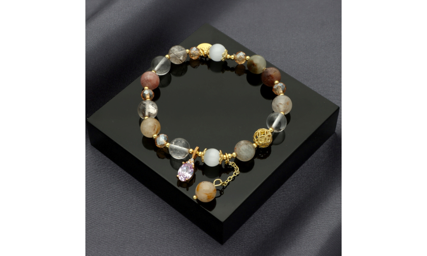 Bransoletka z kwarcem rutylowym, kwarcem Cat Eye i kryształem górskim B96993 to coś więcej niż biżuteria – to symbol kobiecej siły, blasku i harmonii. Elegancka, delikatna, pełna mistycznej energii, stanie się Twoim osobistym talizmanem – źródłem światła i pozytywnych emocji każdego dnia.
