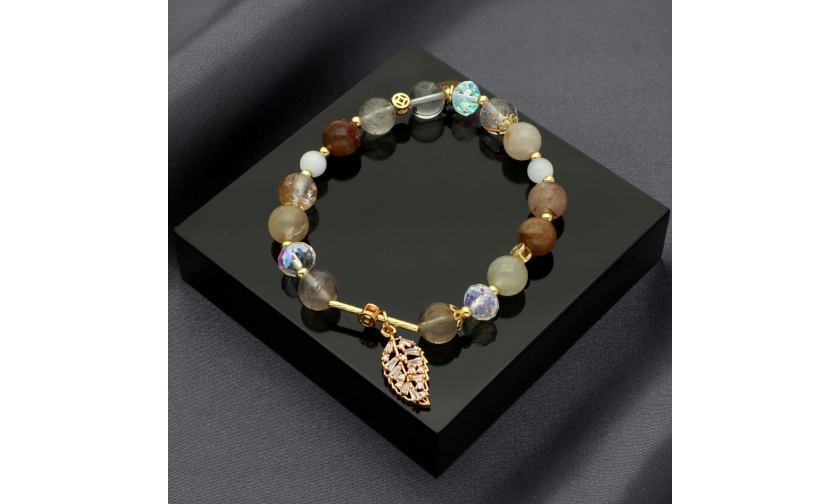 Damska bransoletka B96996 z kwarcem rutylowym i kryształem górskim – biżuteria z mosiądzu z naturalnymi kamieniami