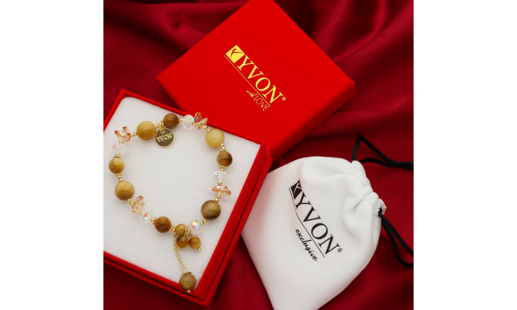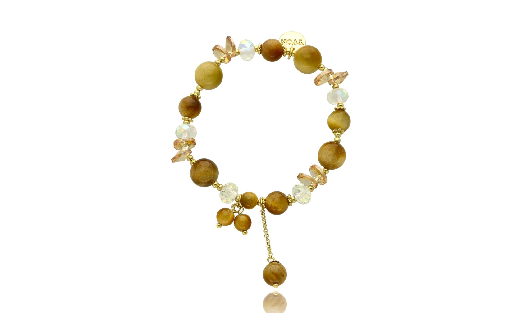 Wyjątkowa bransoletka damska B98397 wykonana z kamieni naturalnych i pozłacanego mosiądzu. Antyalergiczna biżuteria z okiem tygrysa i kryształem górskim to nie tylko elegancki dodatek, ale również amulet sukcesu.