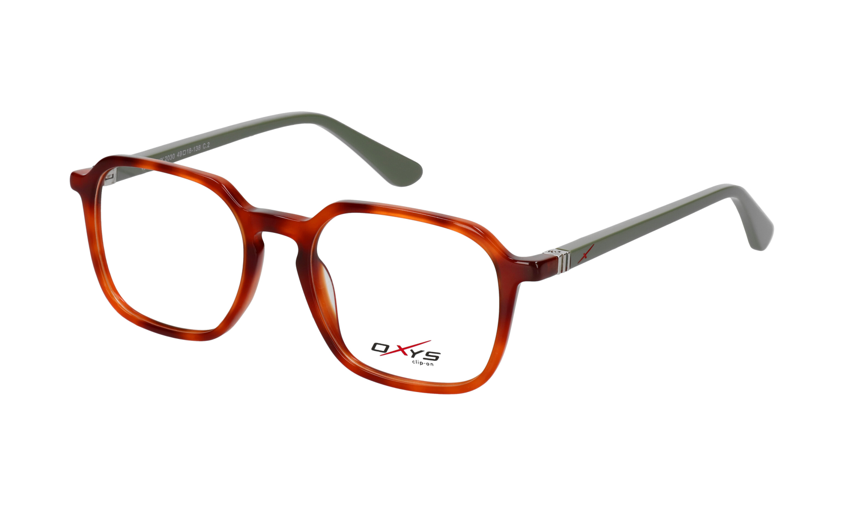 Damski model oprawek okularowych OXYS VX 2030 c.2 o modnym kwadratowym kształcie, kolor: brązowo-zielony.
