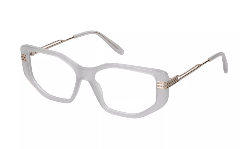 Przód oprawki wykonany został z jasnoszarego tworzywa, co nadaje jej lekkości i subtelności. Mleczny, rozbielony odcień szarości sprawia, że całość jest nadzwyczaj subtelna, dodając blasku i elegancji. Jest to szczególnie efektowny akcent dla kobiet o delikatnych rysach twarzy, ponieważ podkreśla naturalne piękno. To model, który z jednej strony przyciąga uwagę, a z drugiej pozostaje wyrafinowany i harmonijny, doskonale komponując się z różnymi stylizacjami.