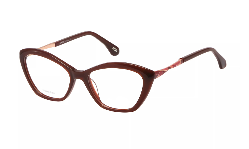 Bordowo-złota kolorystyka nadaje oprawce klasycznego i szykownego charakteru, a zdobienie na zauszniku w formie barwnej mozaiki przyciąga wzrok i wyróżnia model spośród innych. To połączenie elegancji i artystycznych detali sprawia, że oprawka staje się prawdziwym biżuteryjnym dodatkiem, który komponuje się z różnorodnymi stylizacjami – od codziennych po wieczorowe.