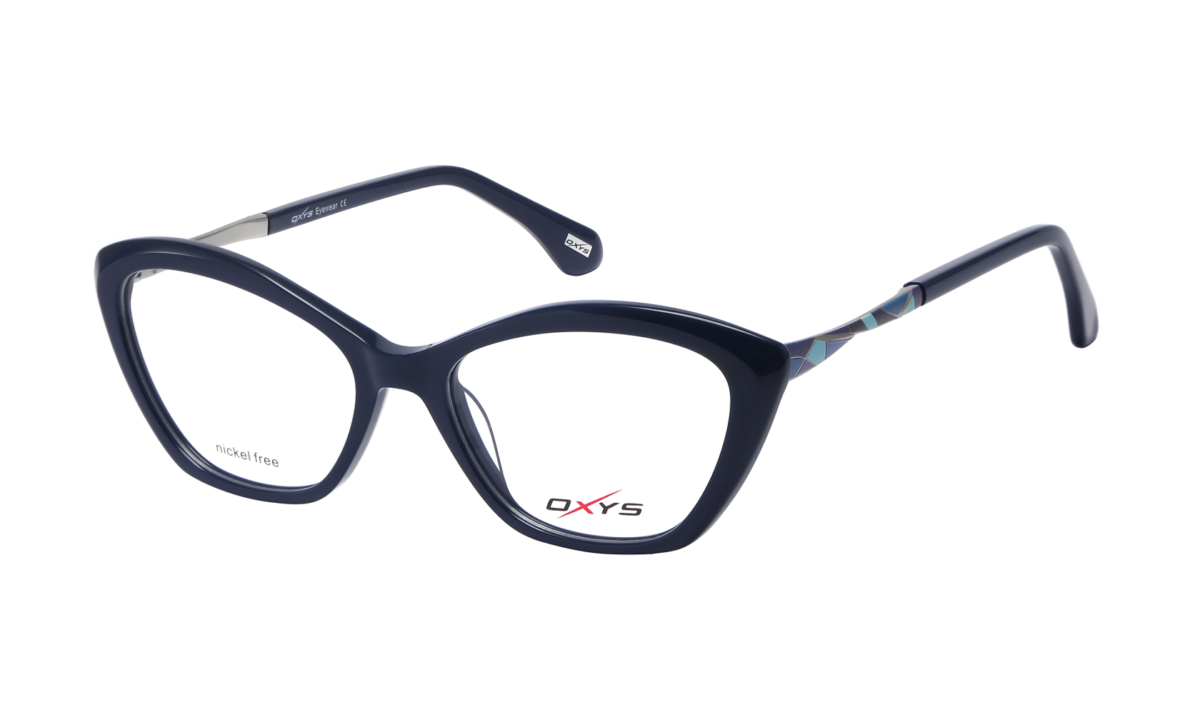 Kobieca oprawka OXYS TP 5034 c.3 w kształcie kocich oczu zachwyca delikatną kolorystyką i ozdobnymi detalami. Wykonana z materiałów wolnych od niklu, jest zarówno stylowa, jak i przyjazna dla skóry.
