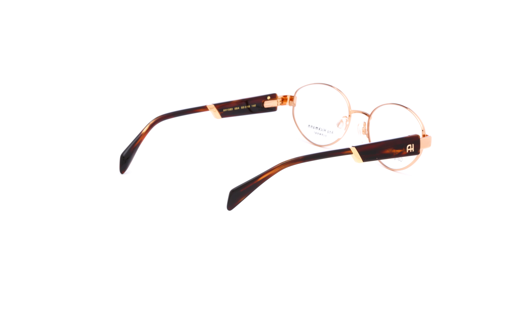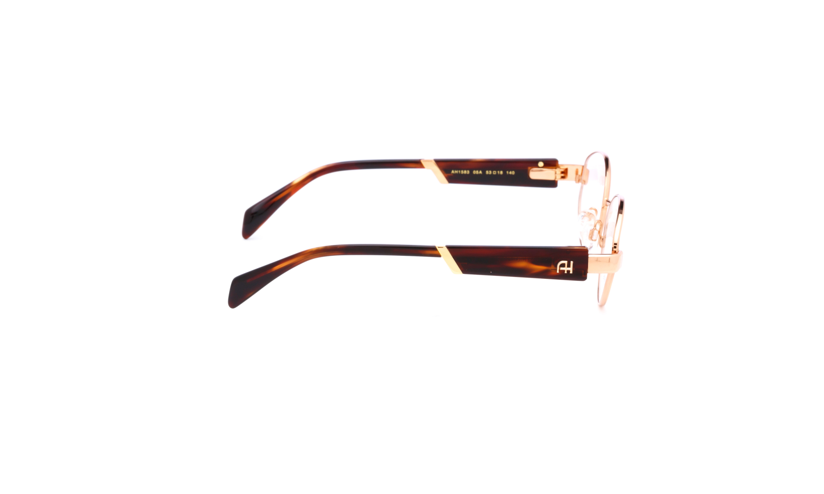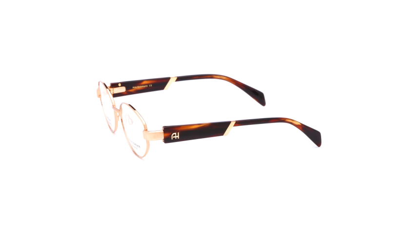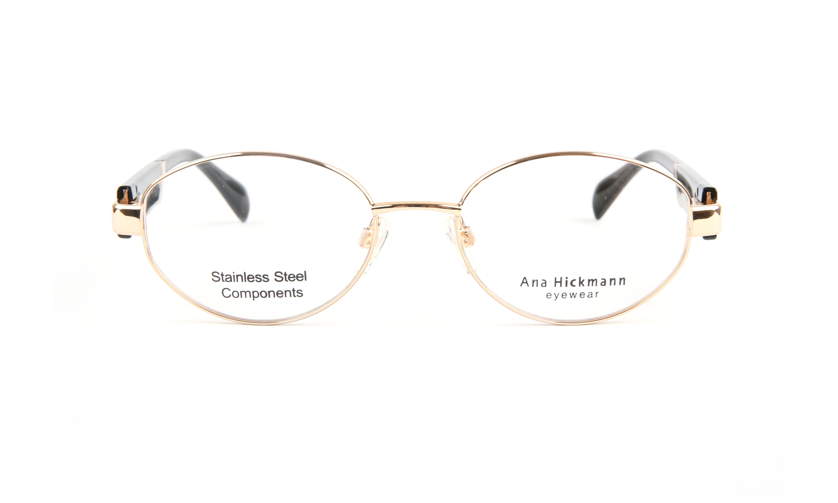 Modna i luksusowa oprawka okularowa ANA HICKMANN 1583 c.05A z owalnymi szkłami. Damskie okulary korekcyjne z szylkretowymi zausznikami i złotą ramką.