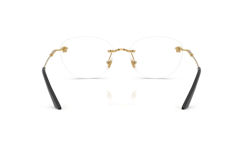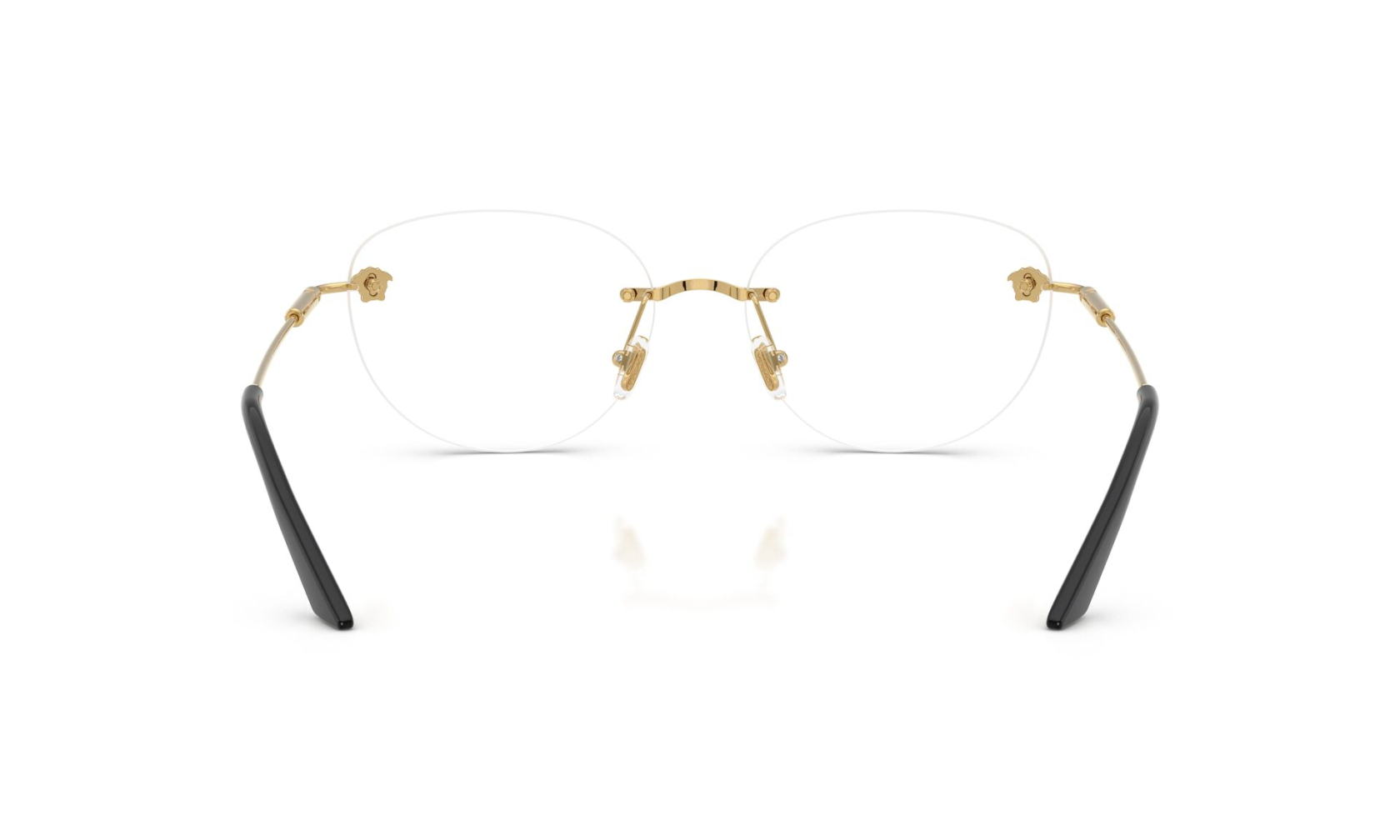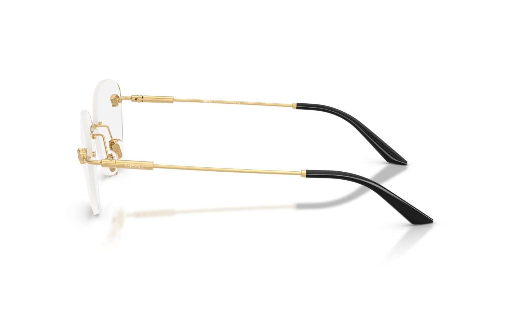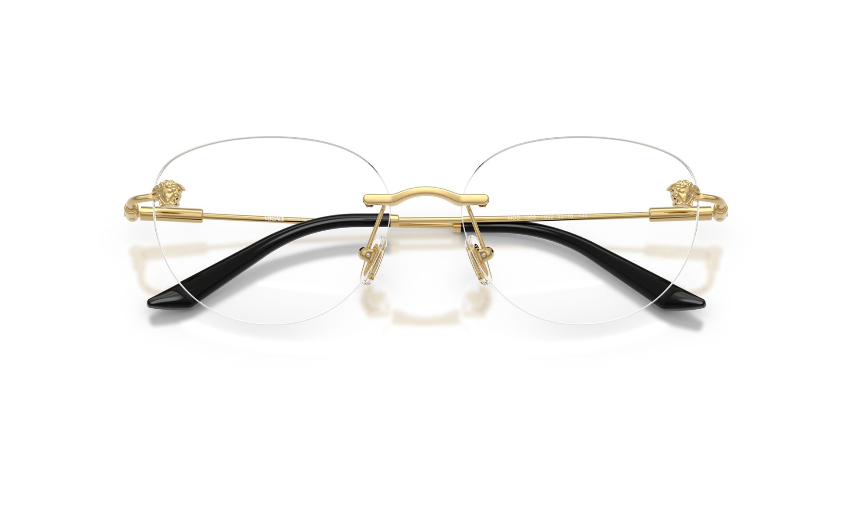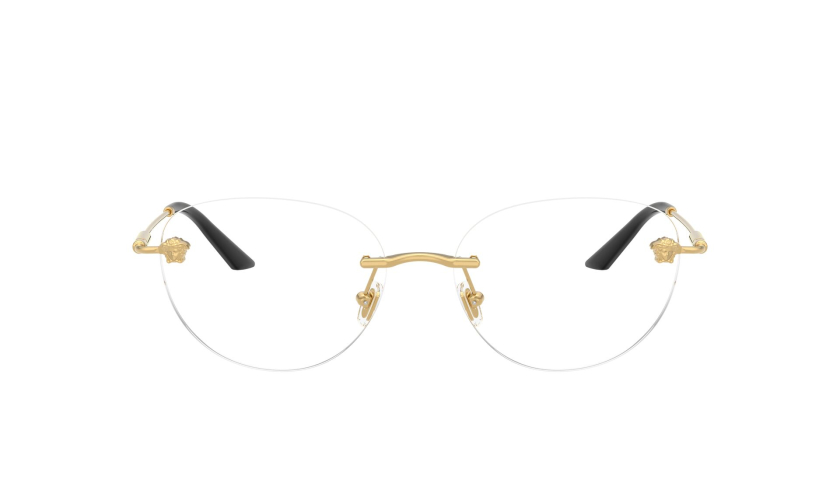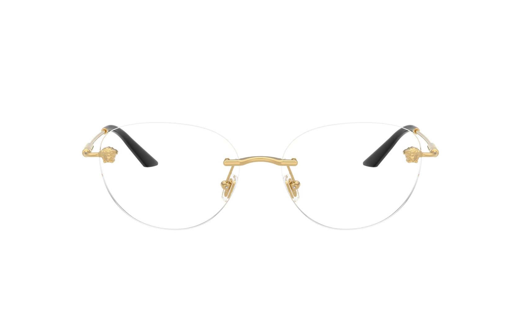 Bezramkowa oprawka do okularów VERSACE 1305 c.1002/55 w kolorze złotym. Luksusowe okulary pełne delikatnych i ozdobnych detali, które podkreslają ich ekskluzywny styl.
