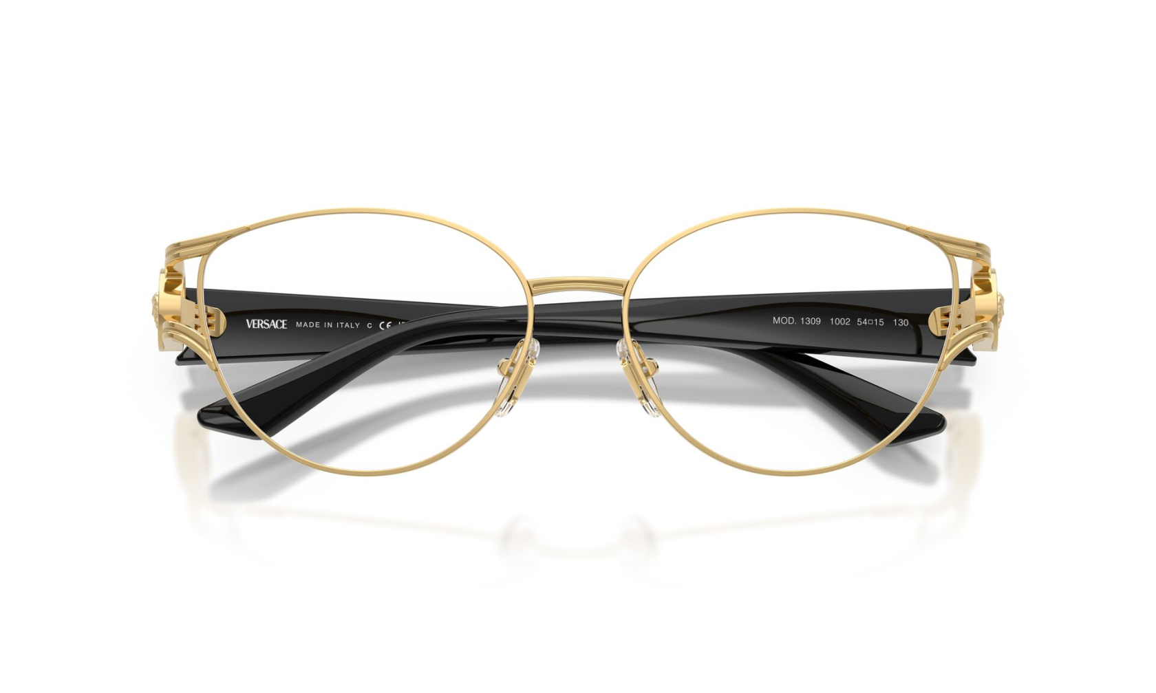 Oprawka VERSACE 1309 c.1002/54 to luksusowy model o fasonie kocie oczy. Okulary mają delikatny front i ozdobne zauszniku z kultowym logo marki Versace.