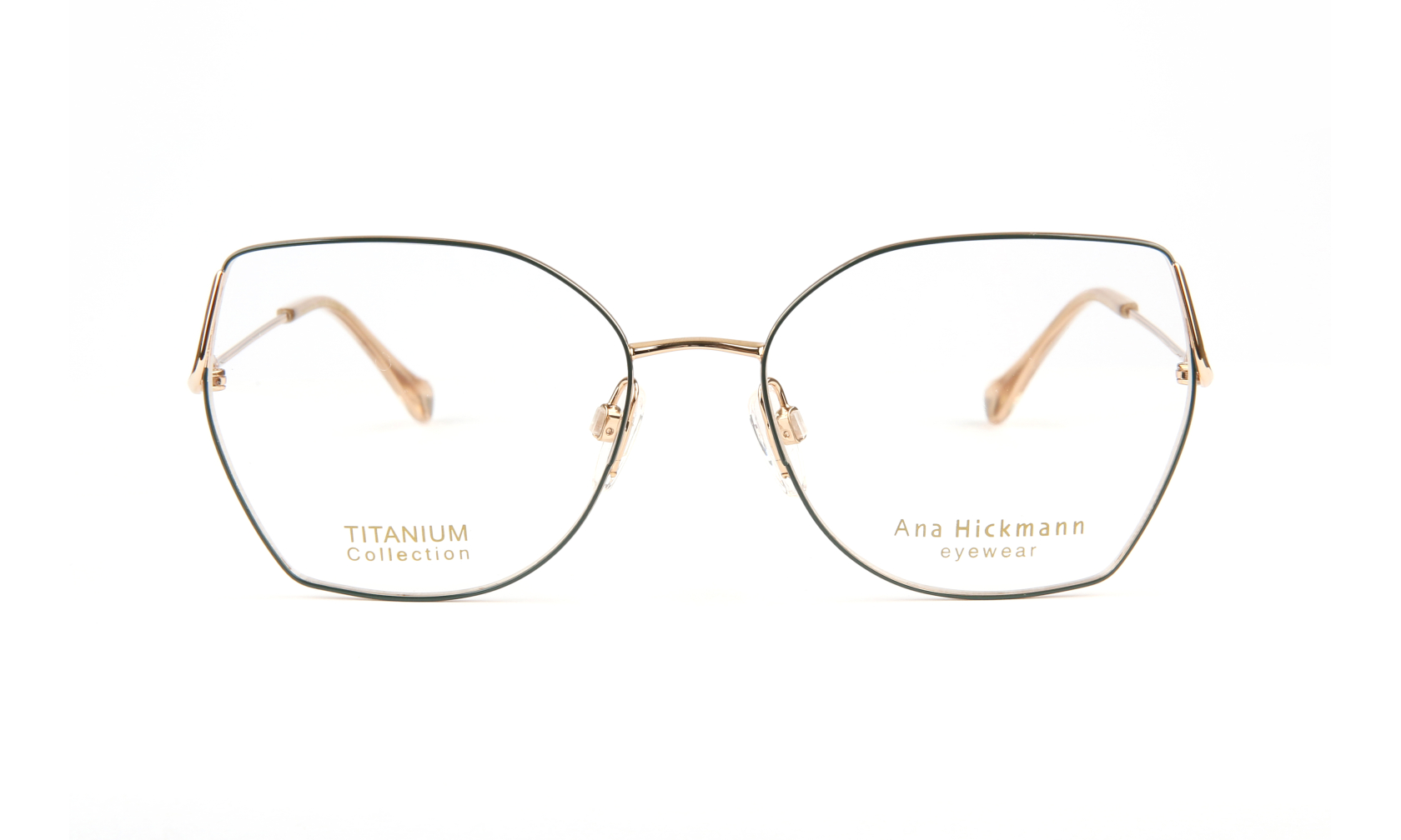 Elegancka złota oprawka ANA HICKMANN 1568T c.09A z tytanową konstrukcją. Luksusowe okulary korekcyjne o stylowym i kobiecym fasonie. Nowoczesna ramka okularowa wykonana z trwałego i lekkiego tytanu.