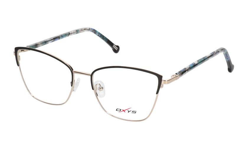 OXYS TP 4041 c.1 to propozycja dla kobiet, które lubią się wyróżniać. Kształt kocich oczu i wyrazista czarno-złota kolorystyka podkreślają temperament i dodają stylizacjom odważnej pikanterii.