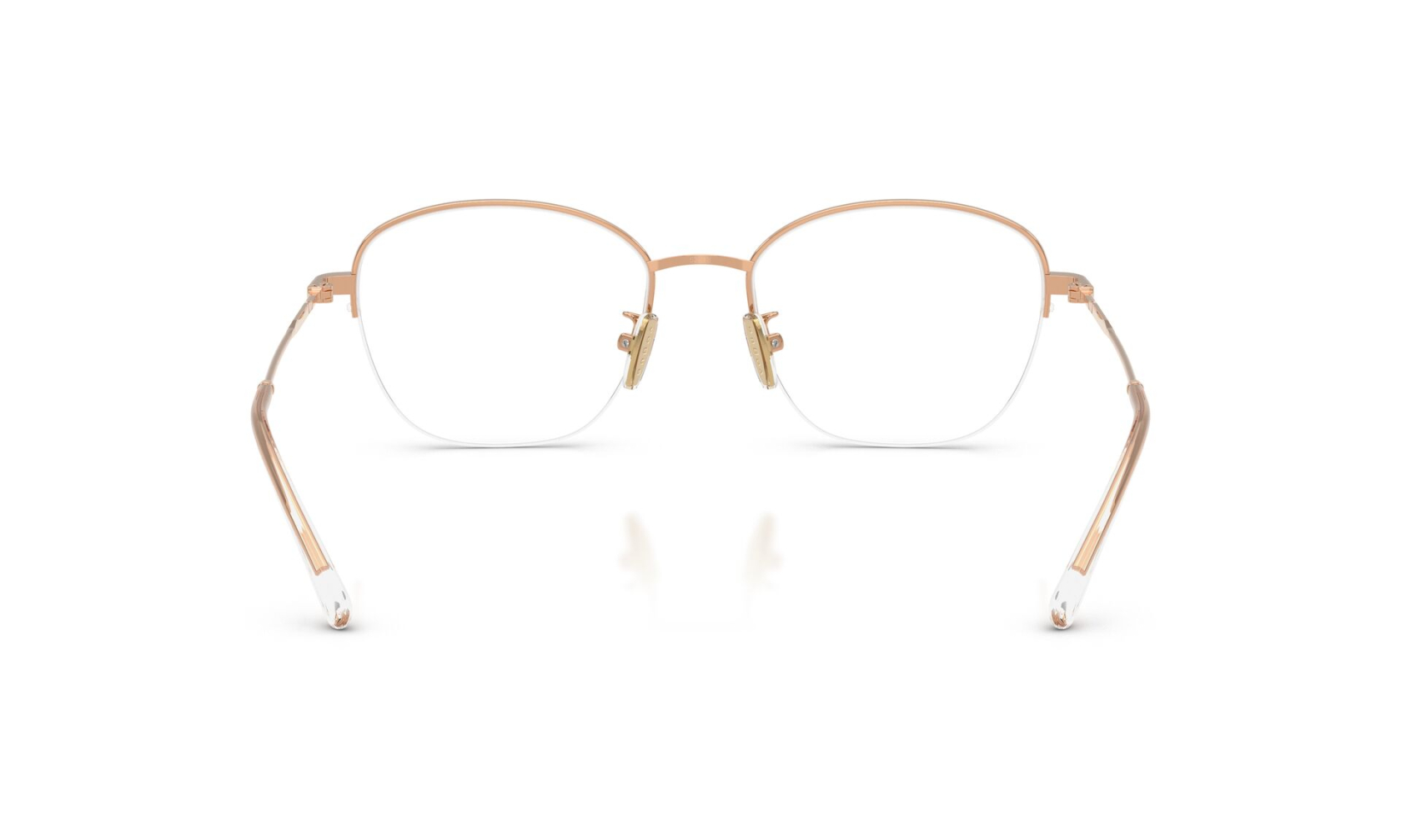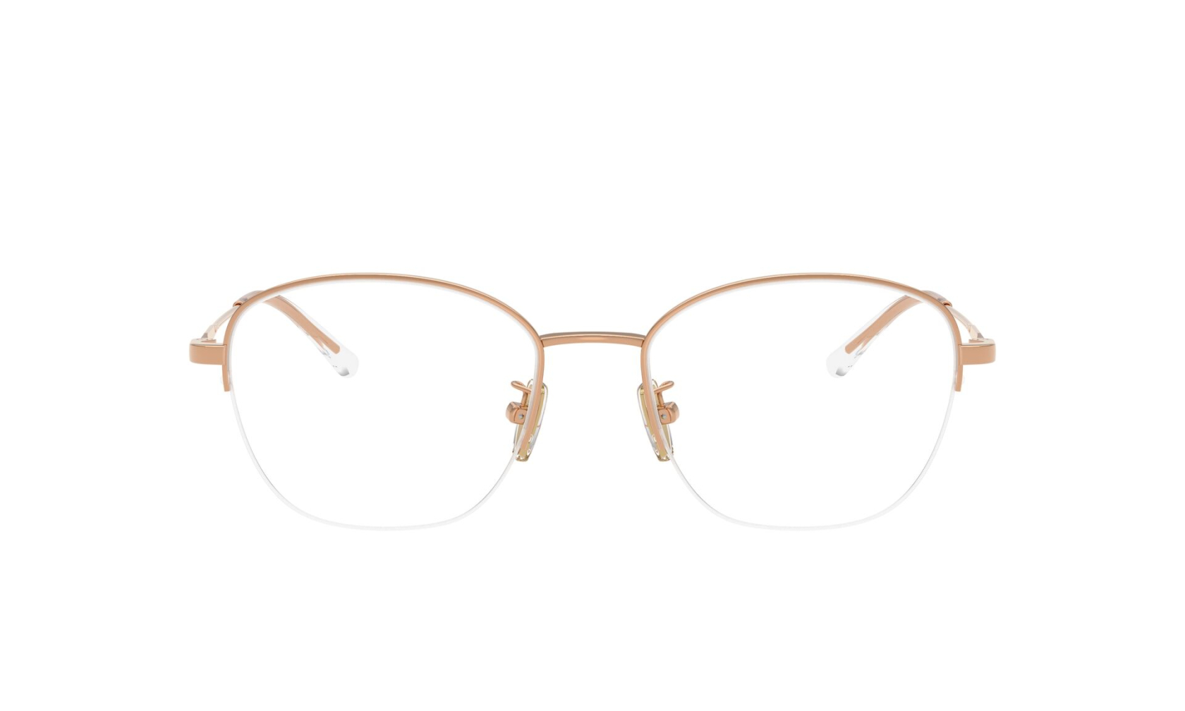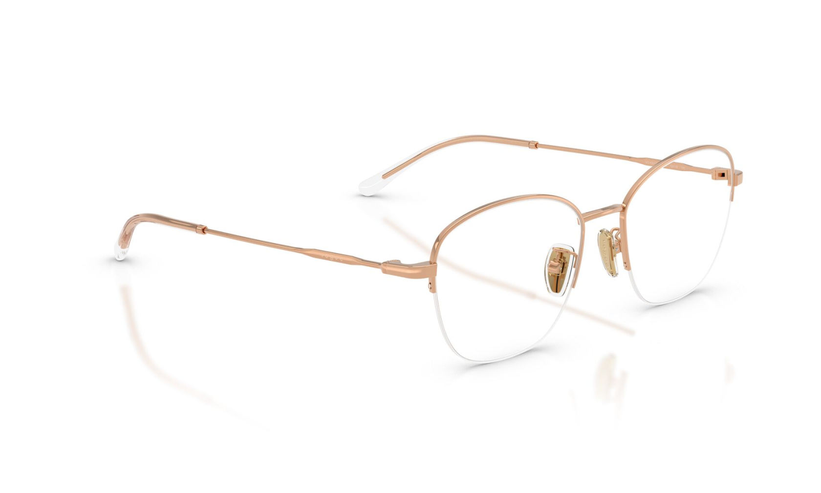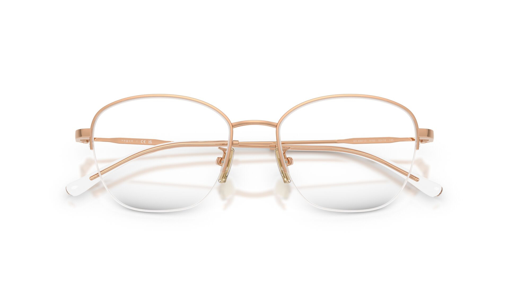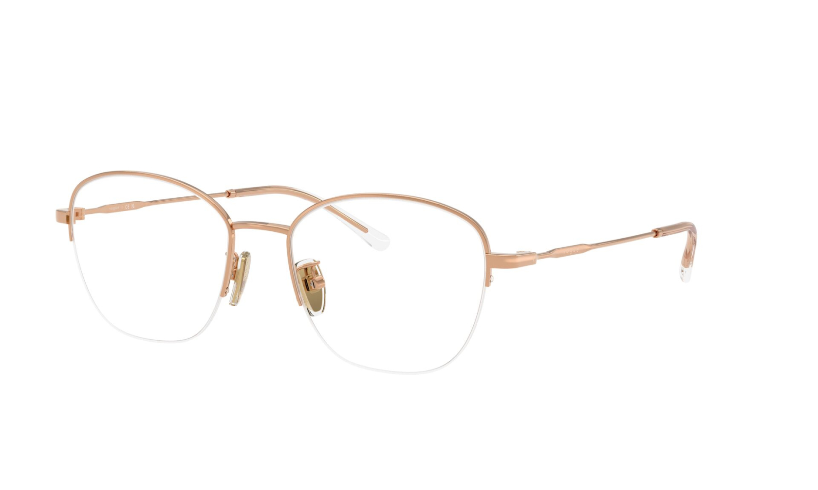 Minimalistyczna oprawka okularowa VOGUE 4357D c.5152/53 o finezyjnej konstrukcji półramki. Eleganckie i biżuteryjne okulary damskie w kolorze różowego złota.