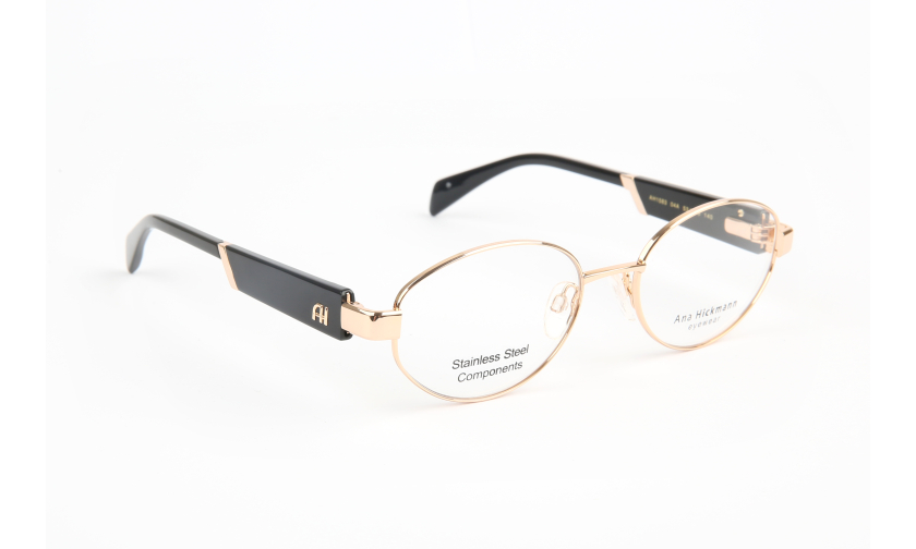 Stylowe damskie oprawki korekcyjne ANA HICKMANN 1583 c.04A o modnym, owalnym kształcie. Luksusowe okulary, które zachwycają dbałościa o detale i wysokiej klasy wykonaniem.