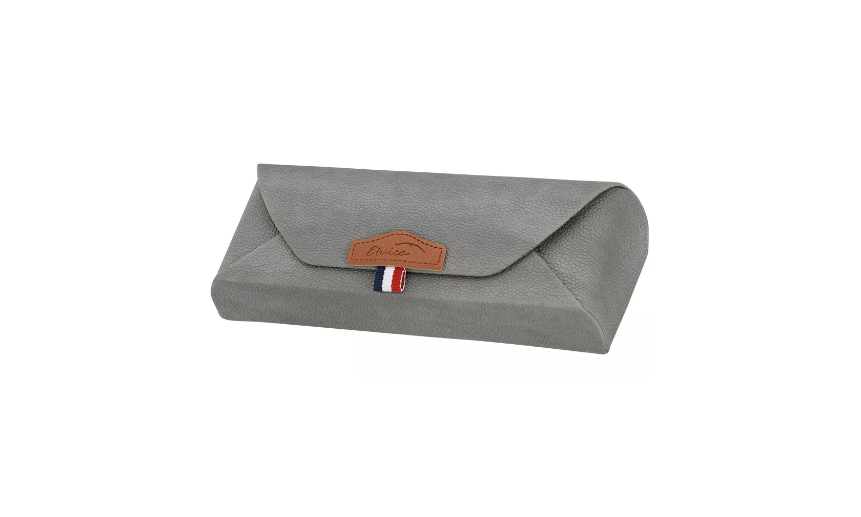 Zewnętrzna warstwa futerału została wykonana z trwałej ekoskóry, odpornej na ścieranie i łatwej w utrzymaniu w czystości. Delikatna faktura materiału dodaje klasycznego uroku, a szary odcień zapewnia uniwersalność – etui świetnie prezentuje się zarówno z okularami korekcyjnymi, jak i przeciwsłonecznymi.