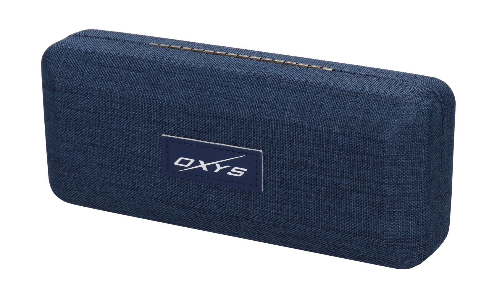 Uniwersalne etui na okulary Oxys z płóciennym wykończeniem w granatowym kolorze. Twarda forma, zawias i miękka wyściółka zapewniają wygodę i bezpieczeństwo.