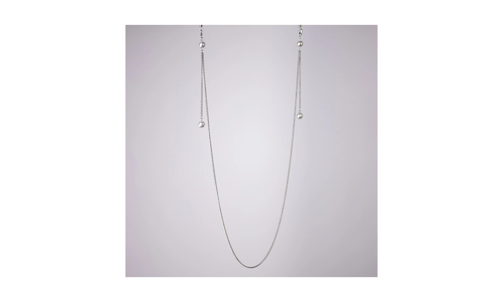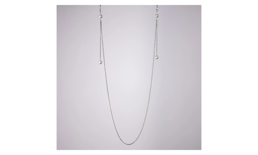 Łańcuszek do okularów HAYNE Kate łączy splot typu pancerka z ozdobnymi perełkami. Elegancki, w kolorze srebrnym, pasuje do okularów korekcyjnych i przeciwsłonecznych. Dł. 75 cm.