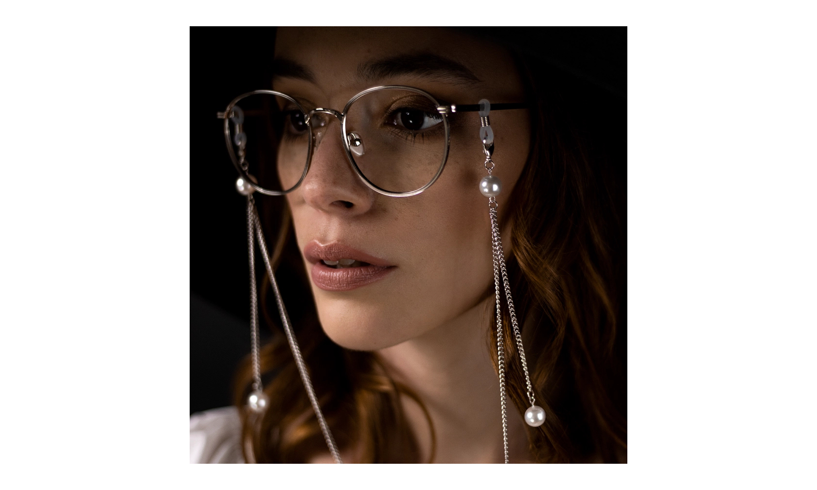 Dostępny w dwóch wersjach kolorystycznych – złotej i srebrnej – doskonale dopasowuje się do różnorodnych oprawek, zarówno korekcyjnych, jak i przeciwsłonecznych. Kolor złoty idealnie sprawdzi się w stylizacjach klasycznych i wieczorowych, natomiast srebrny wariant będzie odpowiedni do codziennych, nowoczesnych zestawień. Perełki, rozmieszczone w równych odstępach, dodają lekkości i kobiecego charakteru, zachowując przy tym elegancki ton.