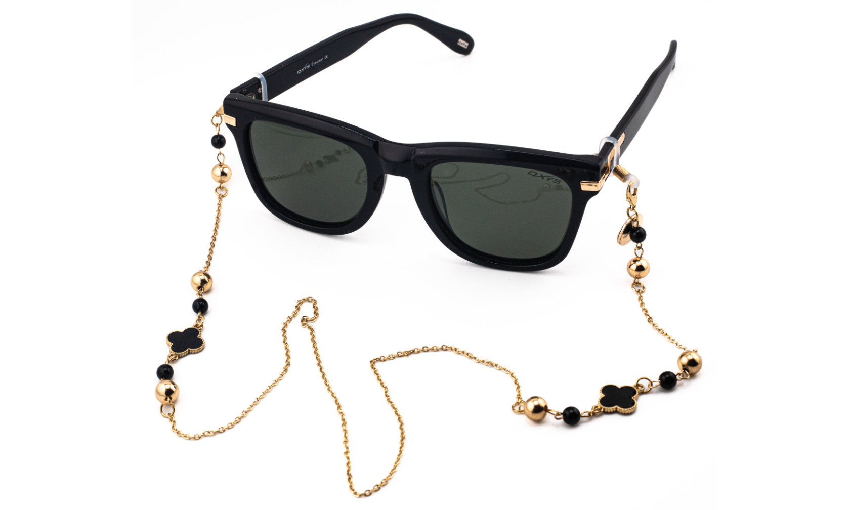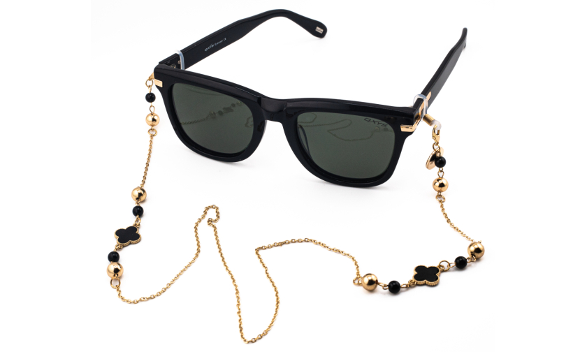 Elegancki i dekoracyjny łańcuszek do okularów OXYS C156 w kolorze złotym z czarnymi zdobieniami. Efektowny i praktyczny dodatek do okularów korekcyjnych i przeciwsłonecznych.
