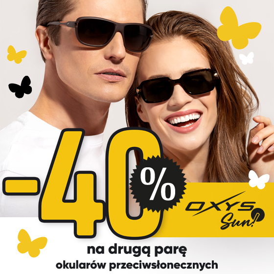 *Promocja dotyczy okularów przeciwsłonecznych OXYS Sun i jest ważna do 30 czerwca 2026 r. Rabat dotyczy tańszego produktu. Możesz skorzystać z promocji w sklepie internetowym Okularium.pl i salonach stacjonarnych Okularium. Szczegóły w regulaminie. Podmiot prowadzący reklamę: Optyka OXYS sp. z o.o.