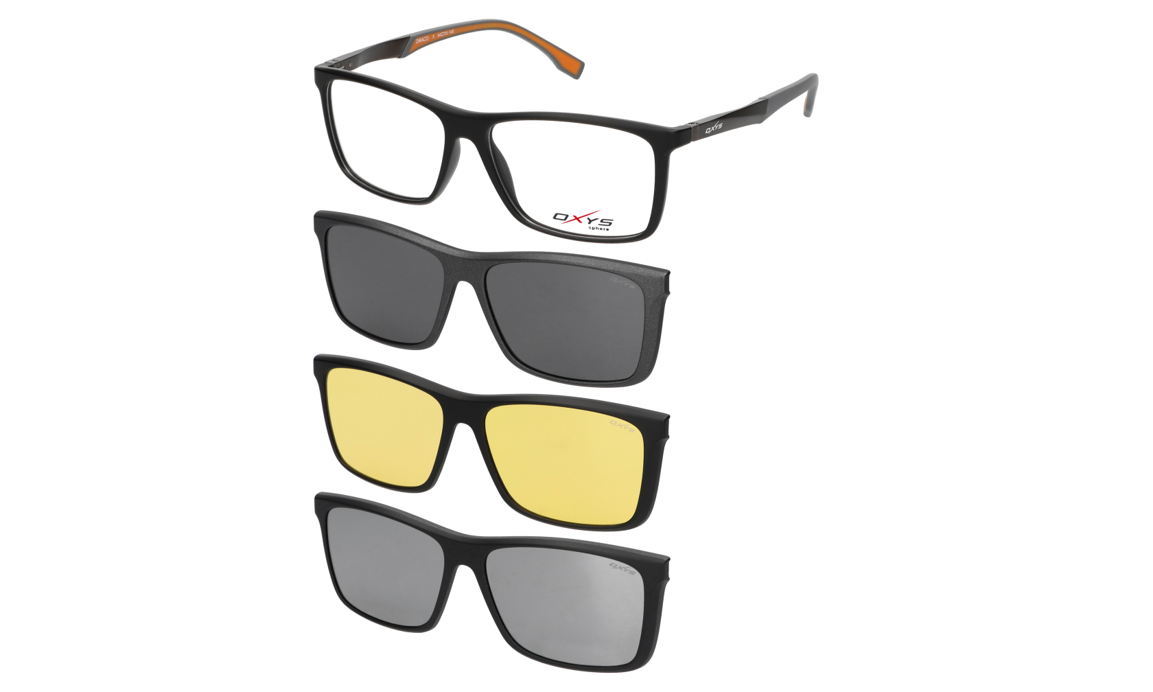 Męska oprawka korekcyjna OXYS Sphere DRACO X z 3 nakładkami przeciwsłonecznymi w zestawie, kolor czarny.