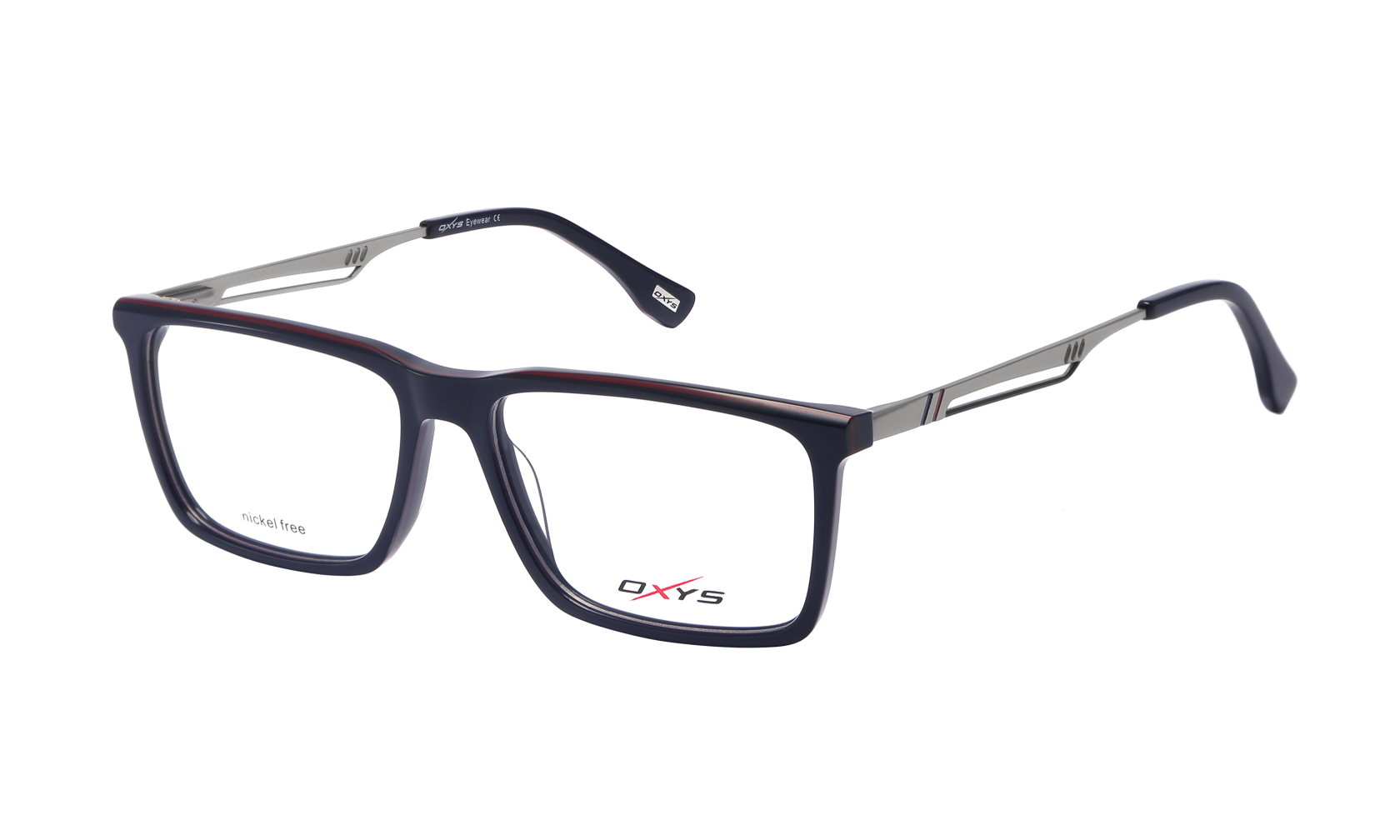 Front oprawki wykonany jest z trwałego tworzywa sztucznego, które łączy lekkość z wytrzymałością, zapewniając komfort noszenia przez cały dzień. Co wyróżnia model OXYS TP 5029 c.3, to trójwarstwowa kolorystyka frontu – dominuje ciemny granat, a subtelne barwne akcenty widoczne na krawędziach nadają oprawce nowoczesnego i oryginalnego charakteru. To dyskretne zestawienie barw sprawia, że okulary są eleganckie, ale jednocześnie wyróżniają się spośród standardowych modeli.