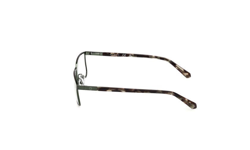 Minimalistyczna prostokątna oprawka GUESS 50244 c.57097 utrzymana w ciemnej kolorystyce w odcieniach militarnej zieleni. Lekkie i praktyczne okulary męskie, które pasują na każdą okazję.