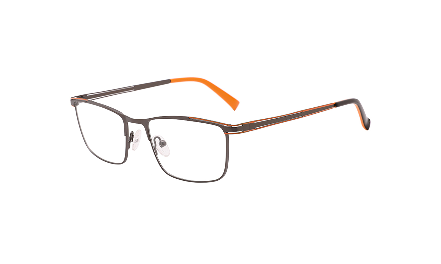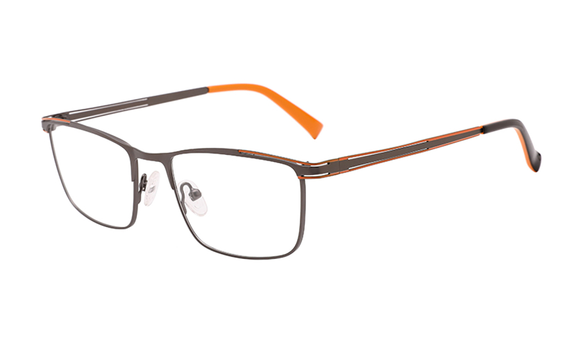 Klasyczny brązowy kolor oprawki został przełamany subtelnymi pomarańczowymi akcentami, które dodają całości nowoczesnego charakteru i lekko sportowej elegancji. Metaliczne detale zostały starannie dopracowane, dzięki czemu okulary prezentują się niezwykle stylowo i spójnie. Minimalistyczny design sprawia, że oprawki nie dominują stylizacji, lecz stanowią jej eleganckie dopełnienie. Kwadratowe oprawki okularowe męskie w brązowo-pomarańczowej kolorystyce to propozycja dla mężczyzn, którzy chcą podkreślić swoją pewność siebie i indywidualny styl, zachowując jednocześnie klasyczny i profesjonalny wygląd.