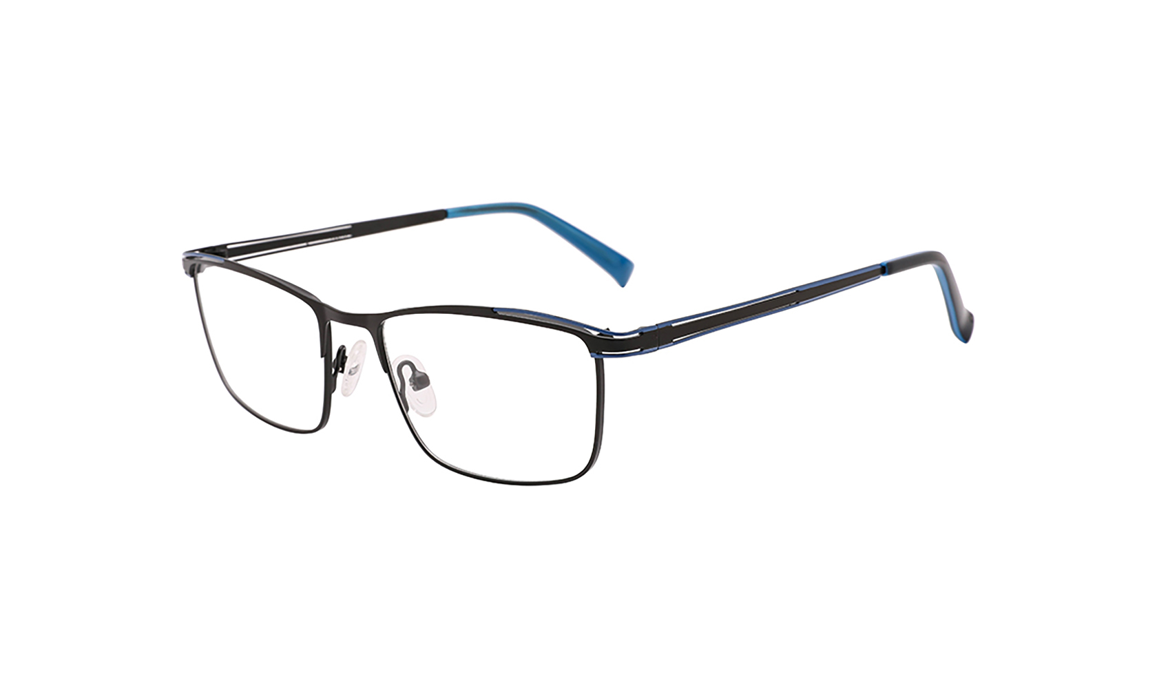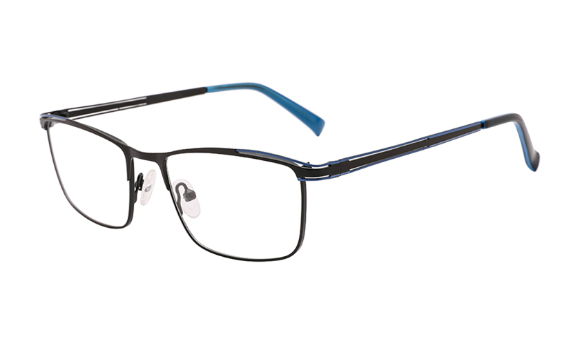 Klasyczny czarny kolor oprawki został przełamany subtelnymi niebieskimi akcentami, które dodają całości nowoczesnego charakteru i lekko sportowej elegancji. Metaliczne detale zostały starannie dopracowane, dzięki czemu okulary prezentują się niezwykle stylowo i spójnie. Minimalistyczny design sprawia, że oprawki nie dominują stylizacji, lecz stanowią jej eleganckie dopełnienie. Kwadratowe oprawki okularowe męskie w czarno-niebieskiej kolorystyce to propozycja dla mężczyzn, którzy chcą podkreślić swoją pewność siebie i indywidualny styl, zachowując jednocześnie klasyczny i profesjonalny wygląd.