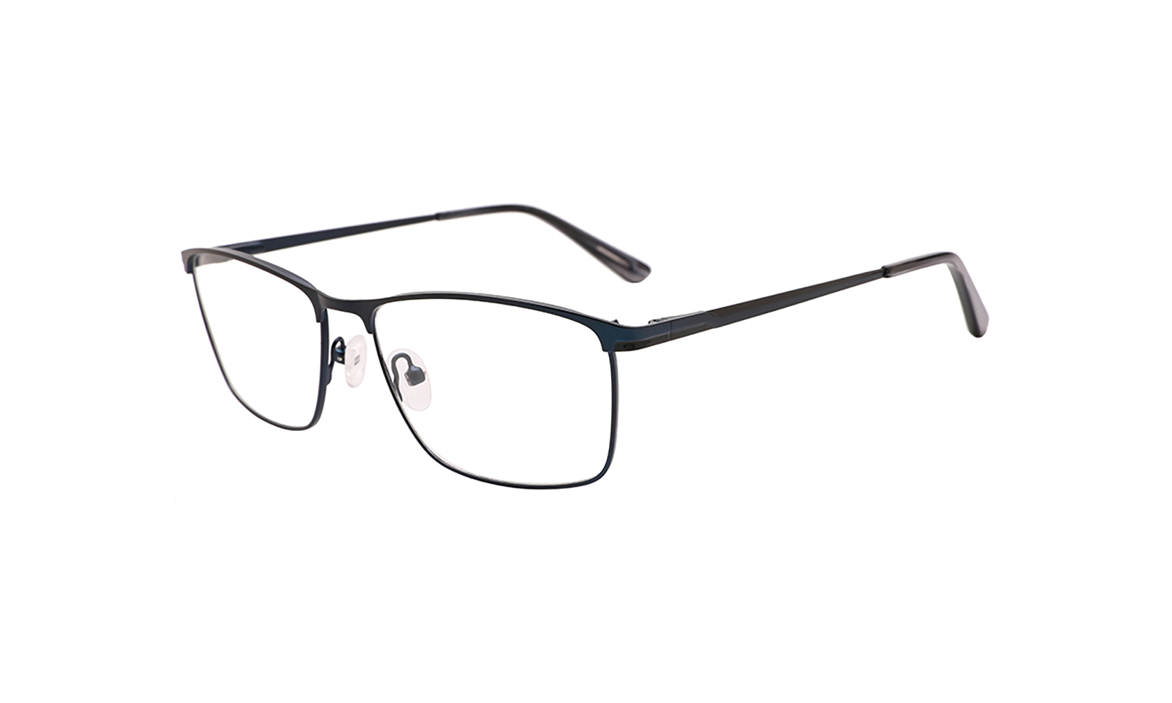 Nowoczesna męska oprawka OXYS RB043 c.3 z metalu nickel free o prostokątnym kształcie. Stonowany styl w połączeniu z metalicznym granatowym wykończeniem tworzy elegancki, a zarazem dynamiczny wygląd idealny do biura.