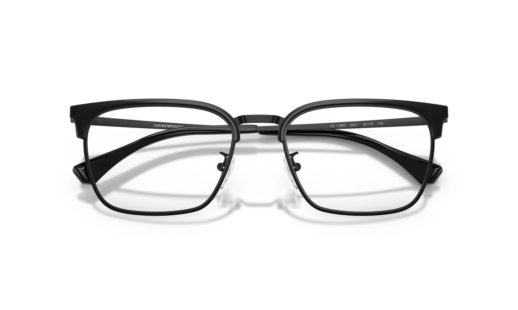 Stylowa oprawka do okularów EMPORIO ARMANI 1186D c.3001/55 o modnym fasonie clubmaster. Eleganckie okulary męskie kwadratowe wykonane z metalu w kolorze czarnym.