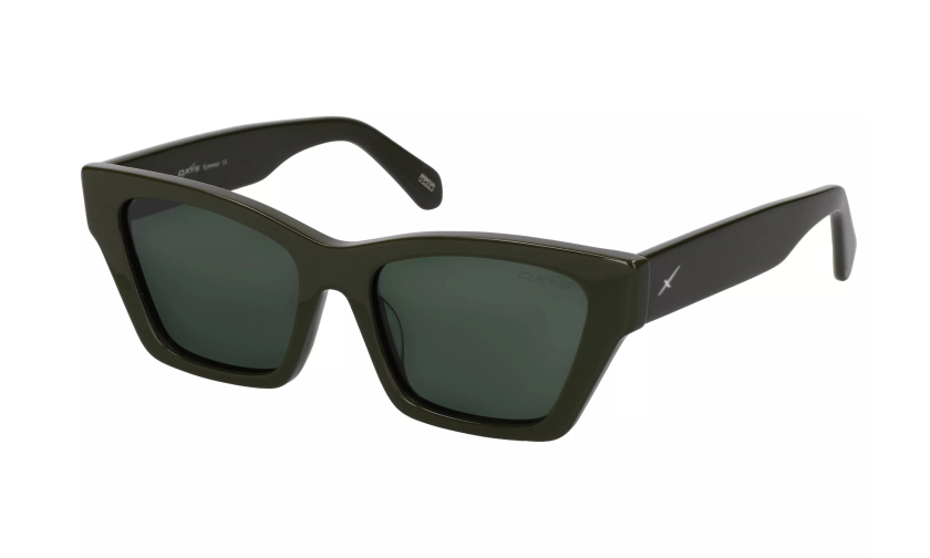 Model wyróżnia się nowoczesnym kształtem z trapezoidalnym frontem, który w połączeniu z szerokimi zausznikami nadaje mu wyjątkowo awangardowego charakteru. Ciemny oliwkowo-zielony kolor oprawy podkreśla jej elegancki i unikalny wygląd, tworząc nadzwyczaj gustowny model okularów. Modny geometryczny design oraz twarzowy odcień sprawiają, że okulary doskonale pasują do różnych typów urody, dodając stylu każdej stylizacji.
