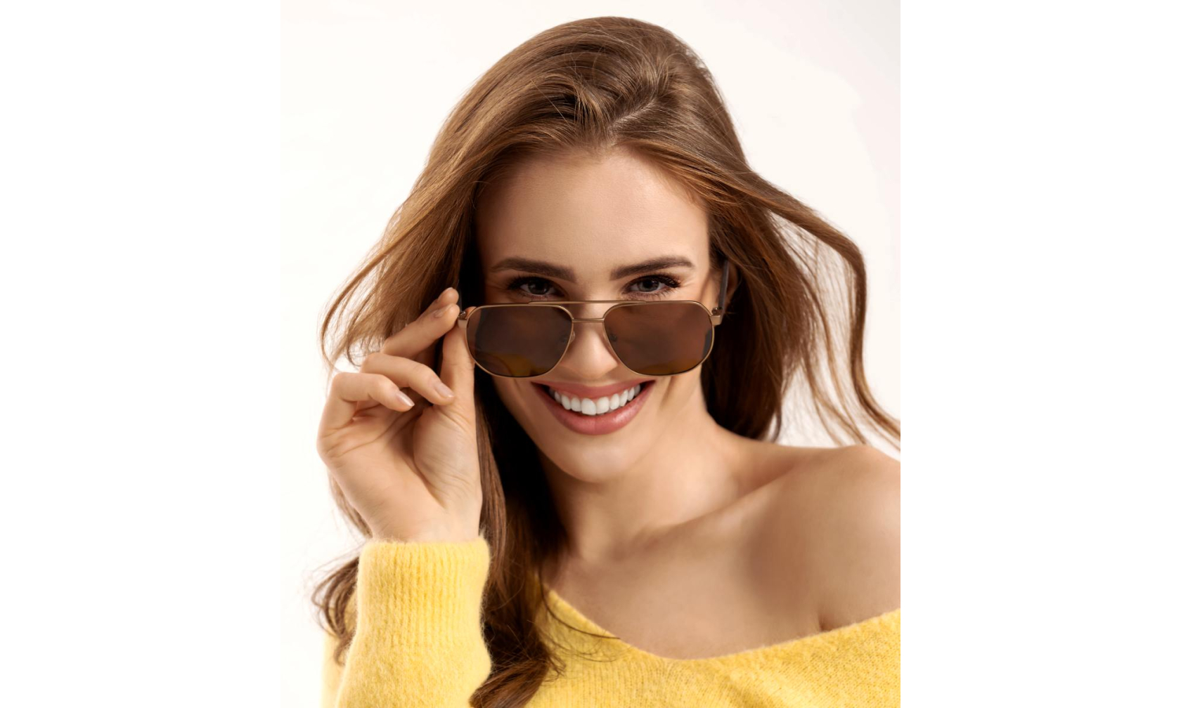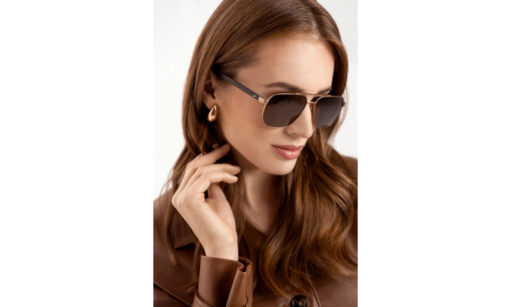 Model ten wyróżnia się subtelną metalową oprawką w kolorze złotym, która nadaje okularom wyrafinowanego charakteru i lekkości. Duże brązowe soczewki o optymalnym przyciemnieniu zapewniają pełen komfort widzenia w intensywnym słońcu, a dzięki profesjonalnej polaryzacji eliminują odblaski, które mogą utrudniać widoczność. Dodatkowo filtr UV gwarantuje ochronę przed szkodliwym promieniowaniem słonecznym.