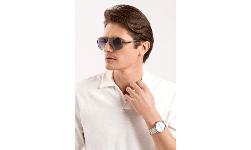 Oprawka wykonana z wysokiej jakości metalu w subtelnym srebrnym kolorze nadaje okularom wyrafinowanego wyglądu, a zarazem zapewnia trwałość i lekkość. Duże cieniowane soczewki nadają całości nowoczesnego sznytu, jednocześnie podkreślając ich modowy charakter. Dzięki zastosowaniu profesjonalnej polaryzacji oraz filtra UV, okulary skutecznie chronią oczy przed szkodliwym promieniowaniem słonecznym i odblaskami, oferując maksymalny komfort widzenia w każdych warunkach.