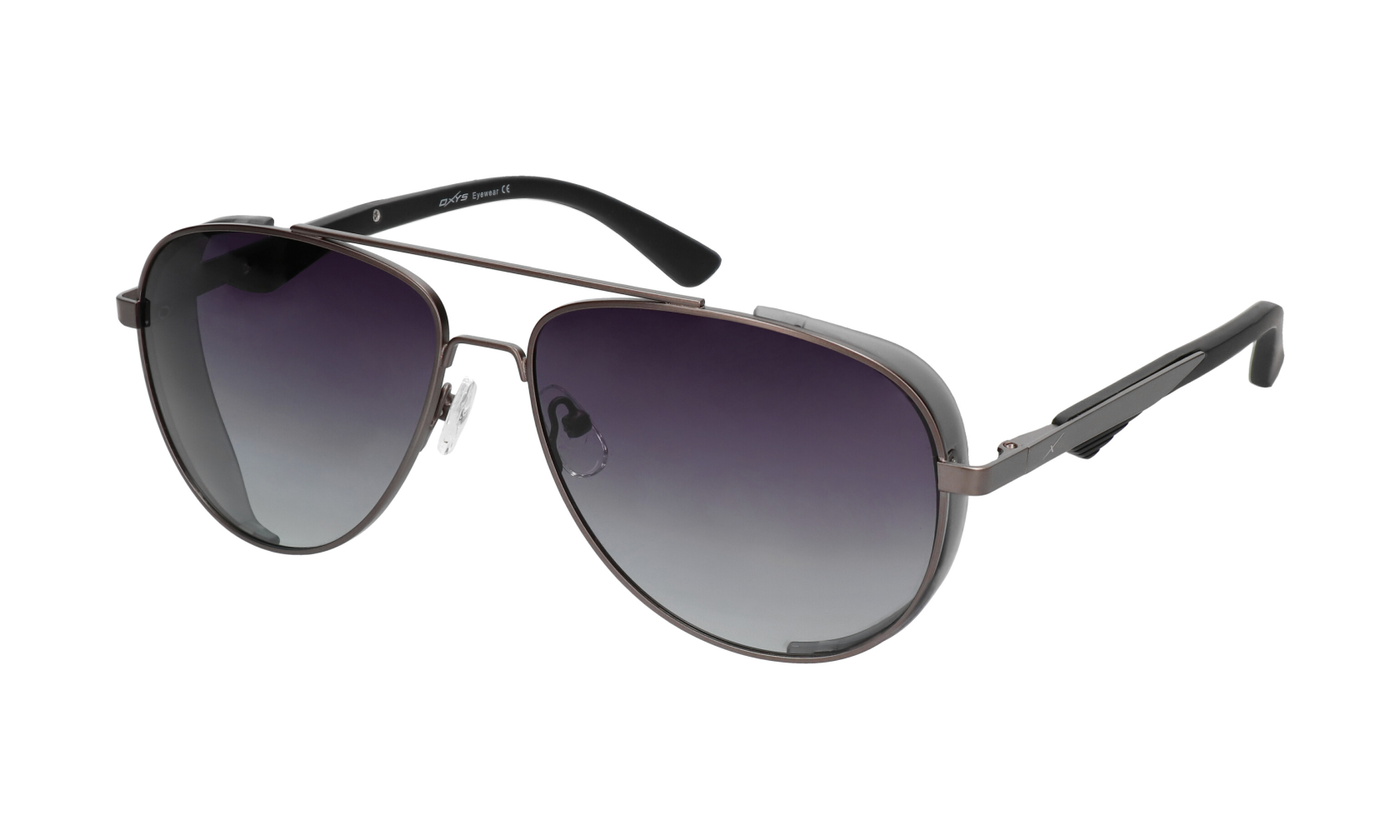 Okulary przeciwsłoneczne OXYS Sun-005 c.3 z cieniowanymi szkłami i oprawą w stylu awiator, kolor: srebrna ramka i czarne soczewki.