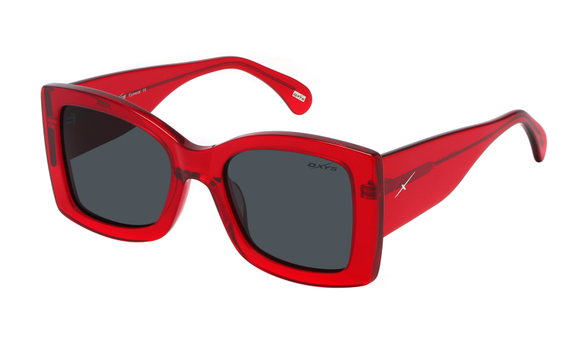 Transparentna oprawa w odcieniu czerwieni nadaje okularom OXYS Sun-019 c.3 oryginalności i energii, a jej subtelny połysk przyciąga uwagę i pięknie komponuje się z ciemnymi szkłami. Taki kontrast barw sprawia, że model ten świetnie uzupełni zarówno casualowe, jak i bardziej eleganckie stylizacje, stając się mocnym punktem całego looku.