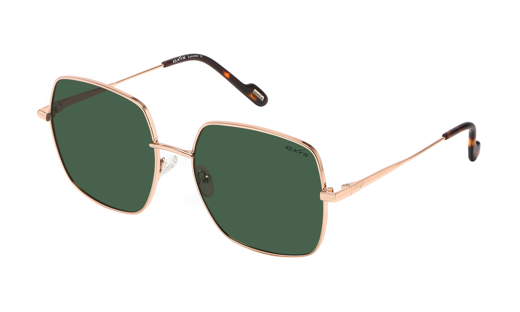 Okulary przeciwsłoneczne OXYS Sun-018 c.2 to wyjątkowe połączenie klasycznej elegancji i współczesnego designu. Duże, kwadratowe soczewki nadają im modnego, wyrazistego charakteru, a smukła metalowa ramka wolna od niklu gwarantuje komfort noszenia i bezpieczeństwo dla skóry. Złota oprawa z subtelnym metalicznym połyskiem pięknie współgra z zielonymi szkłami, tworząc ponadczasowy duet, który doskonale sprawdzi się zarówno w codziennych, jak i bardziej eleganckich stylizacjach.