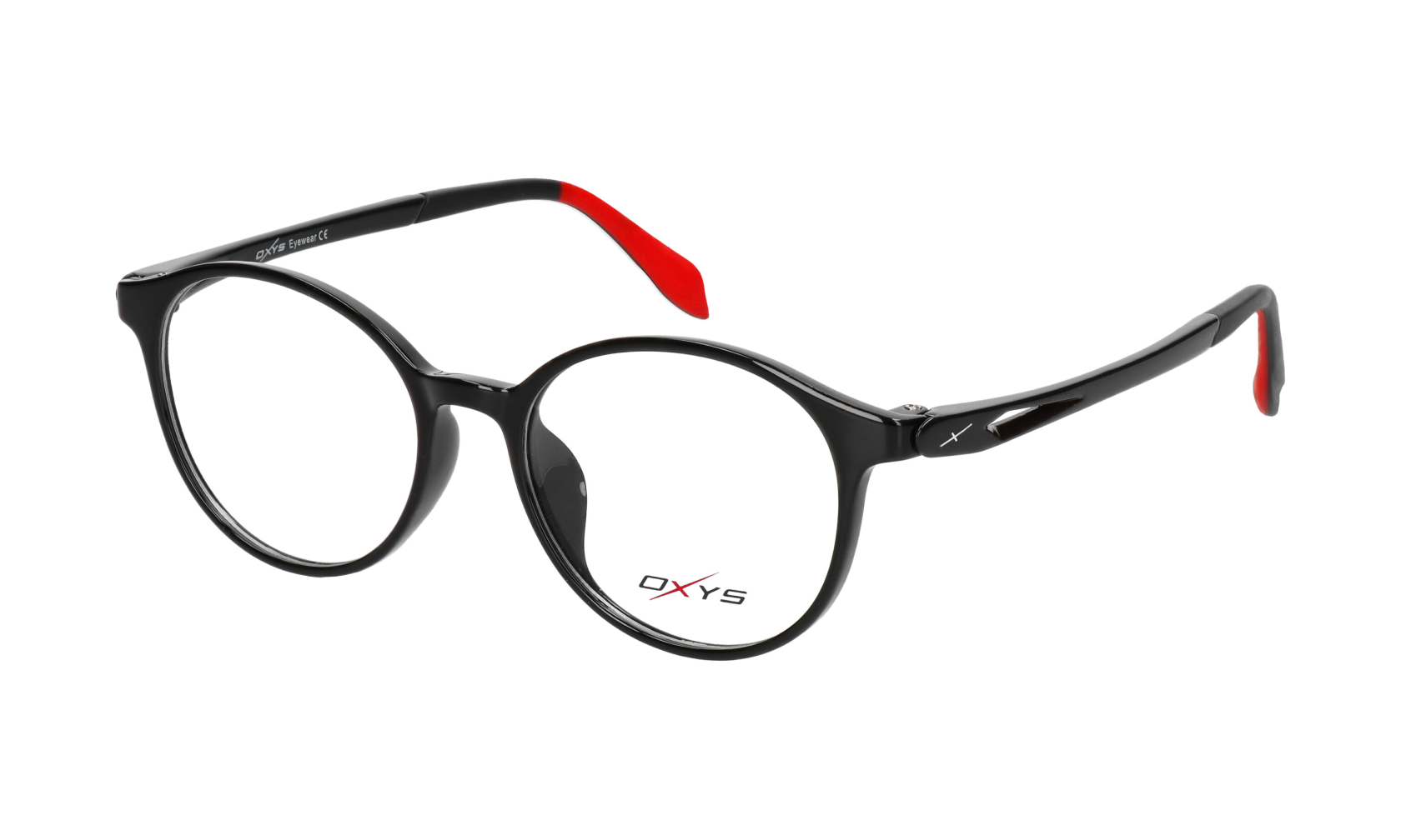 Okrągłe oprawki do okularów korekcyjnych OXYS TP 5017 c.1 z lekkiego tworzywa w kolorze czarnym.