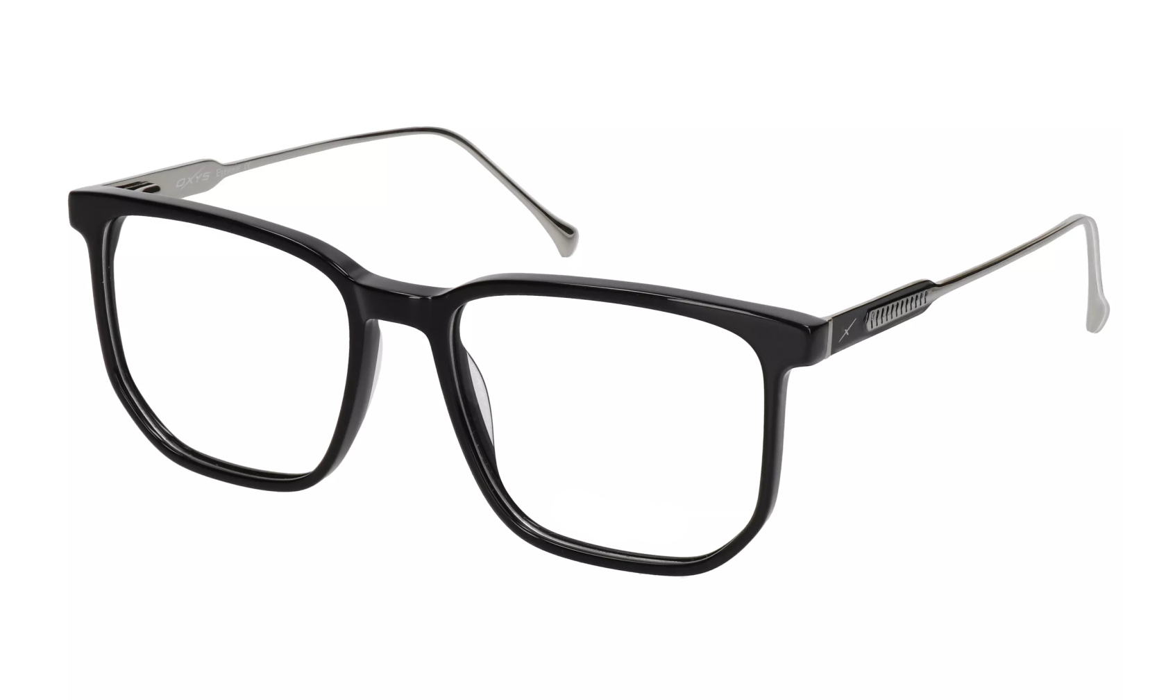 Elegancka i duża oprawka do okularów OXYS TP 5025 c.1 o kwadratowym kształcie, z czarnym frontem i metalowymi zausznikami.