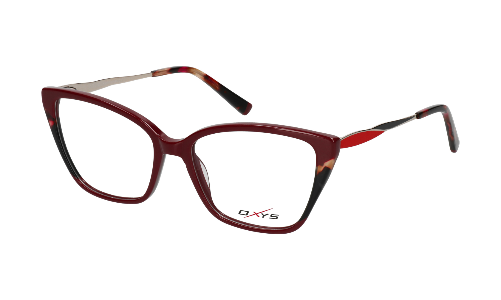 Oprawka korekcyjna OXYS VX 2027 c.1 o kobiecym fasonie kocich oczu, w kolorze burgundowym.