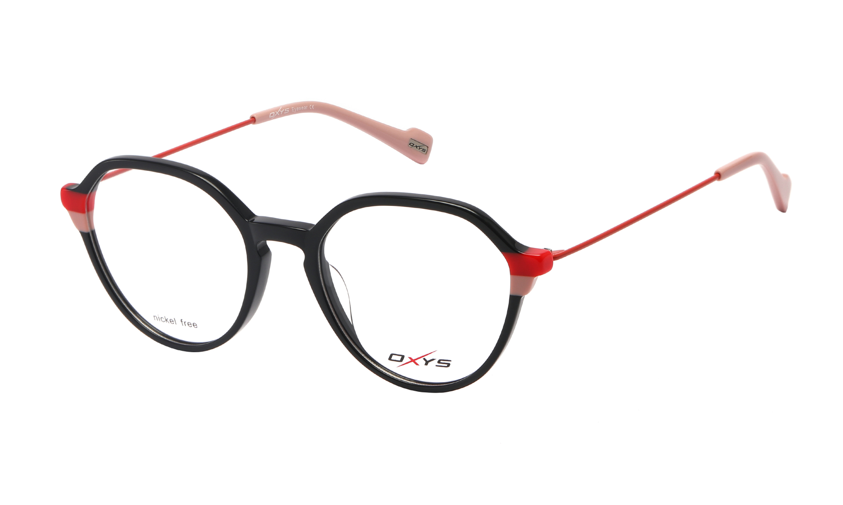 Kolorowa, młodzieżowa oprawka do okularów OXYS TP 5030 c.1 zachwyca odważnym zestawieniem barw i oryginalnym fasonem. Łączy elementy z tworzywa i metalu Nickel Free w odważny model okularów, idealny dla osoby o nietuzinkowym guście.