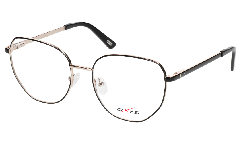 Czarno-złote oprawki OXYS TP 4029 c.1 zachwycają designerskim kształtem, który przyciąga wzrok. Model unisex doskonale pasuje do kobiecych i męskich rysów twarzy, subtelnie podkreślając spojrzenie.