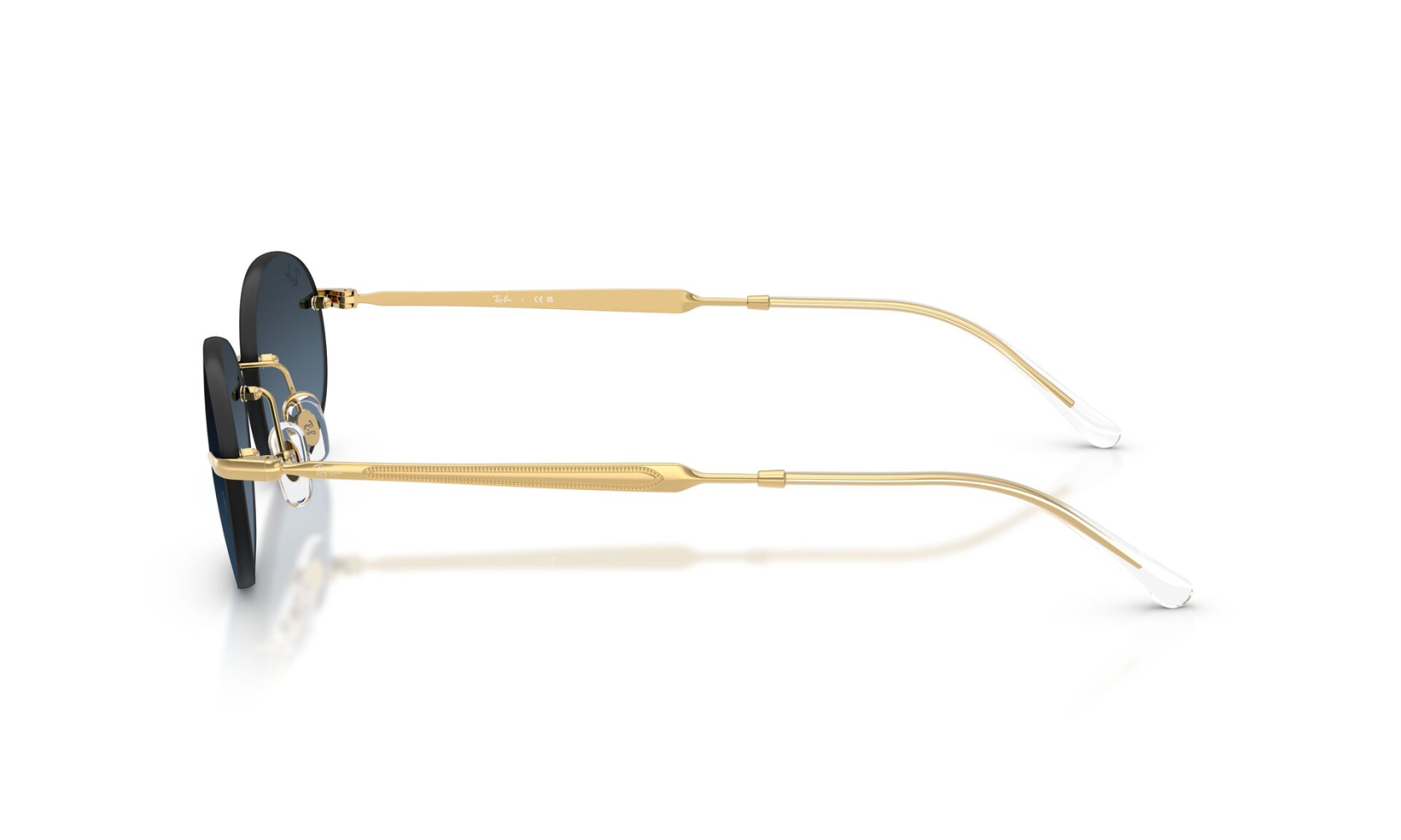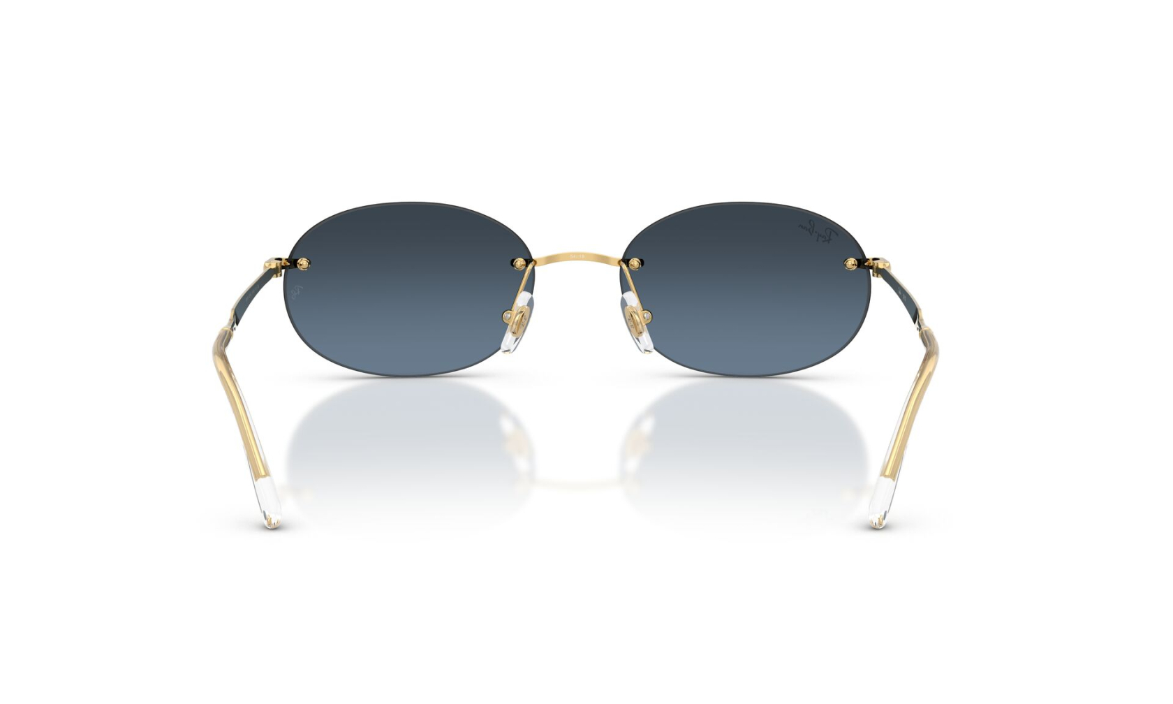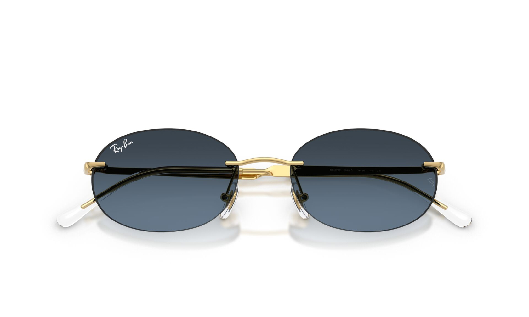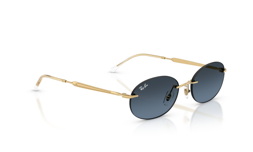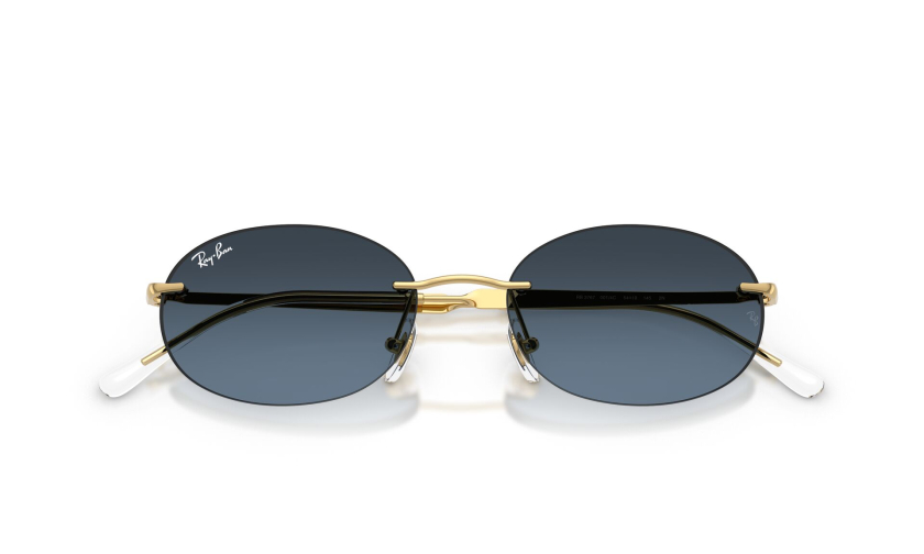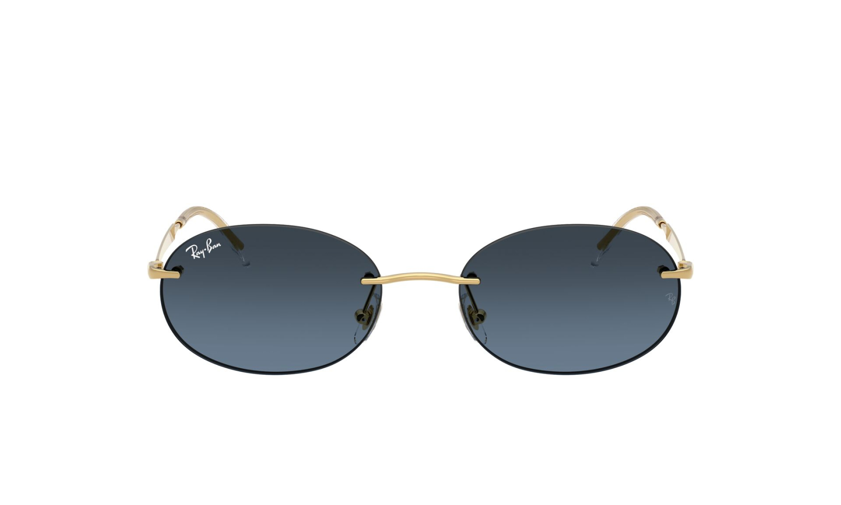 Owalne okulary przeciwsłoneczne RAY BAN 3767 c.001/4C54 to bezramkowe okulary w stylu Y2K. Minimalistyczna złota ramka doskonale pasuje do niebieskich soczewek z filtrem UV. Ten modal okularów zapewnia stylowy wygląd i wysoka ochronę przed słońcem.